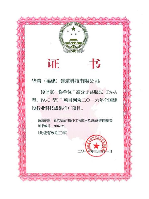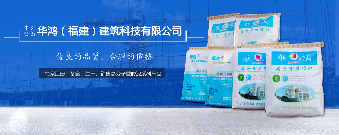 中外合資華鴻(福建)建筑科技有限公司創(chuàng)建于 1995 年,是中國建筑學(xué)會 、建設(shè)部科技發(fā)展促進(jìn)中心建設(shè)科技理事會、中國建筑裝飾協(xié)會、中國建筑學(xué)會施工與建材學(xué)術(shù)委員會防水技術(shù)專業(yè)委員會會員單位。公司引進(jìn)國外先進(jìn)的“Polymer-modified cementitious mixtures(水泥基聚合物改性復(fù)合材料)生產(chǎn)技術(shù),利用進(jìn)口原料在國內(nèi)獨家注冊、備案、生產(chǎn)、銷售高分子益膠泥系列產(chǎn)品。公司檢測手段先進(jìn),生產(chǎn)設(shè)施配套齊全,擁有先進(jìn)的進(jìn)口復(fù)合材料生產(chǎn)線,從試驗研究、產(chǎn)品開發(fā)到技術(shù)應(yīng)用都能配套地推出工業(yè)化科研成果及產(chǎn)成品,具有完善的科研、生產(chǎn)、質(zhì)保、銷售及售后服務(wù)系統(tǒng)。公司廠區(qū)距鐵路線 1 公里,與京福高速公路相鄰,交通十分便利。現(xiàn)可年產(chǎn)高分子益膠泥系列化產(chǎn)品 10 萬噸。